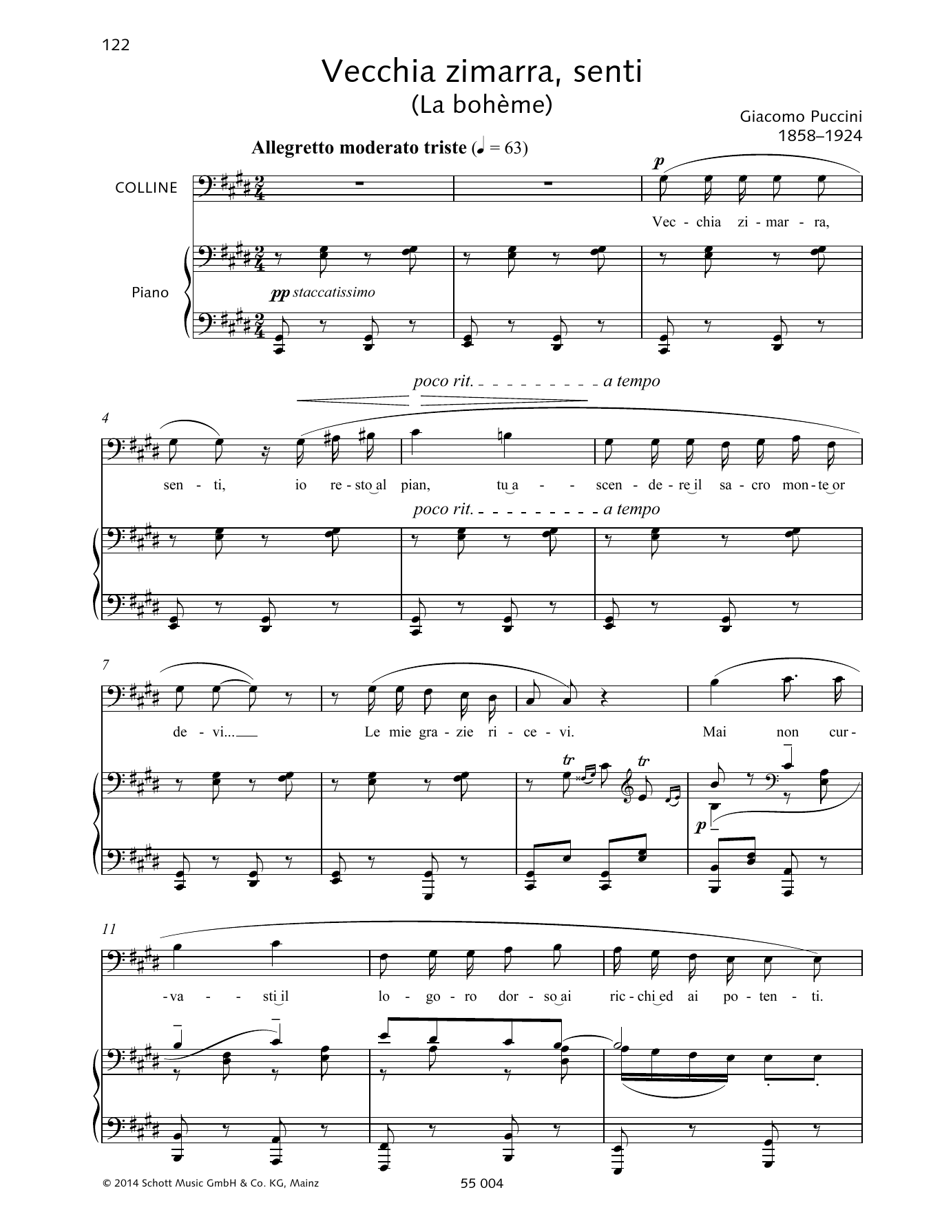 Download or print Giacomo Puccini Vecchia zimarra, senti sheet music, chords and digital score arranged for Piano & Vocal. This Classical score includes 2 page(s).