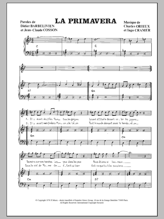 Download or print Gigliola Cinquetti La Primavera sheet music, chords and digital score arranged for Piano & Vocal. This French score includes 2 page(s).