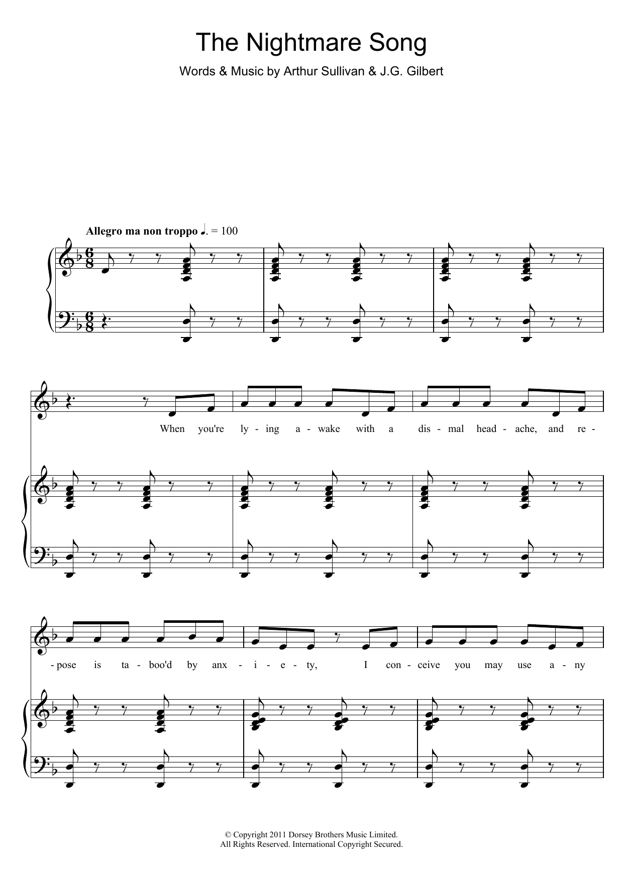 Download or print Gilbert & Sullivan The Nightmare Song sheet music, chords and digital score arranged for Piano & Vocal. This Classical score includes 13 page(s).