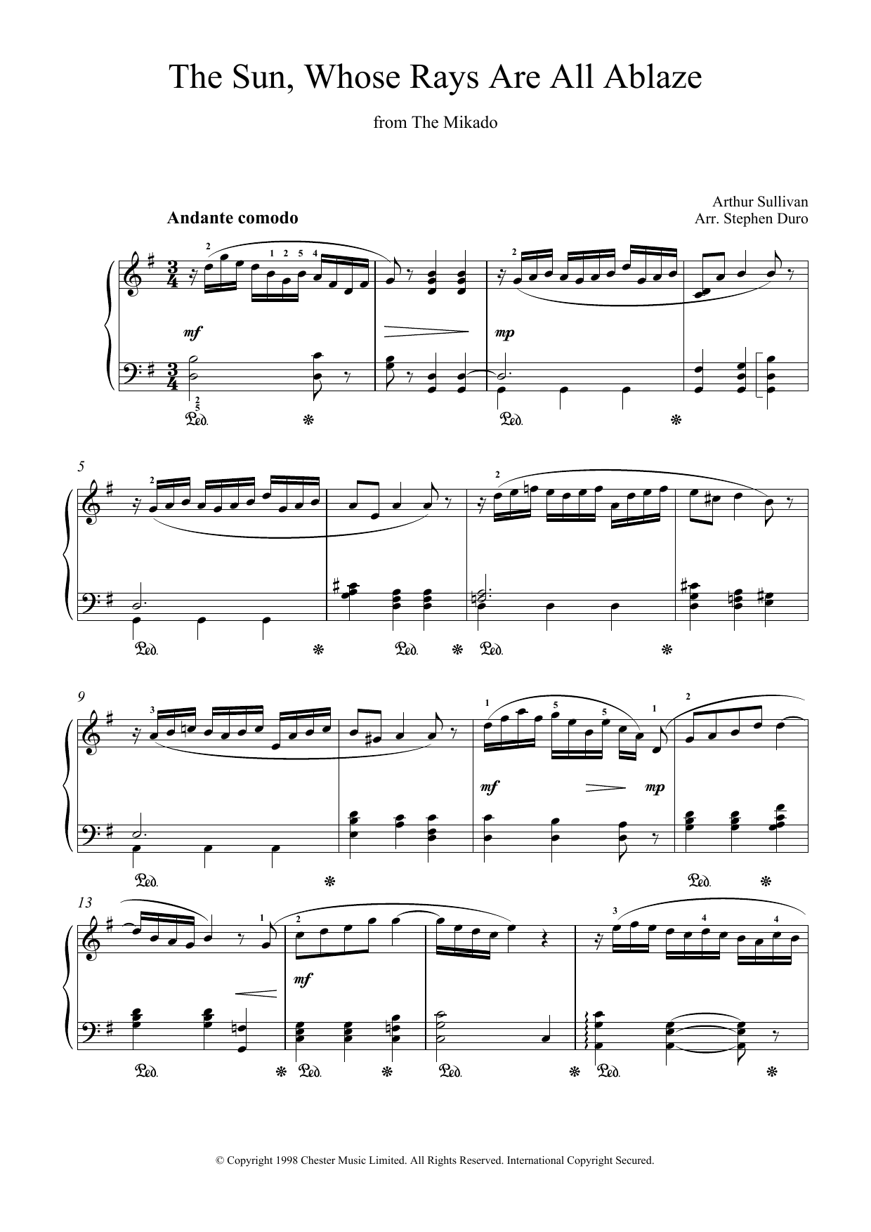 Download or print Gilbert & Sullivan The Sun Whose Rays Are All Ablaze (from The Mikado) sheet music, chords and digital score arranged for Piano & Vocal. This Musical/Show score includes 4 page(s).