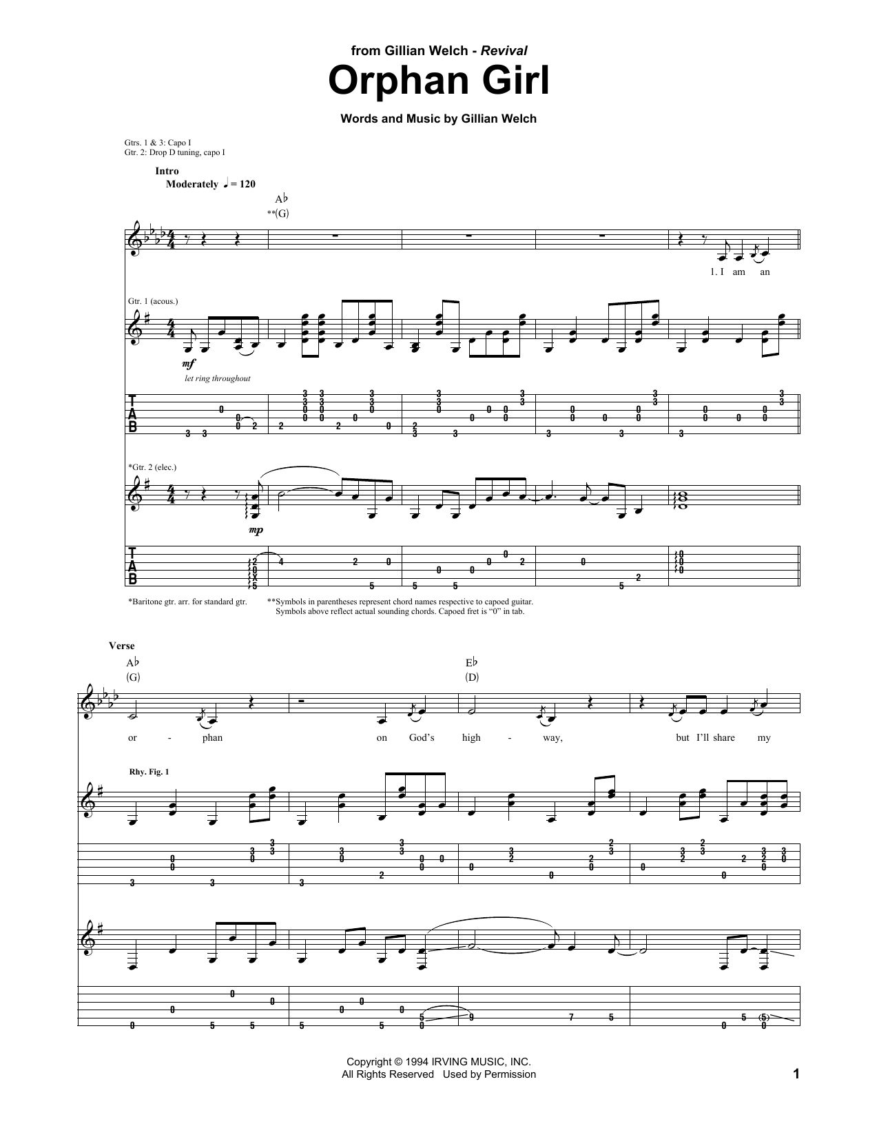 Download or print Gillian Welch Orphan Girl sheet music, chords and digital score arranged for Guitar Chords/Lyrics. This Country score includes 2 page(s).