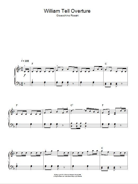 Download or print Gioachino Rossini William Tell Overture (Finale) sheet music, chords and digital score arranged for Beginner Piano (Abridged). This Classical score includes 2 page(s).