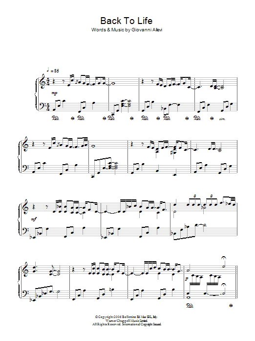Download or print Giovanni Allevi Back To Life sheet music, chords and digital score arranged for Piano Solo. This Classical score includes 5 page(s).