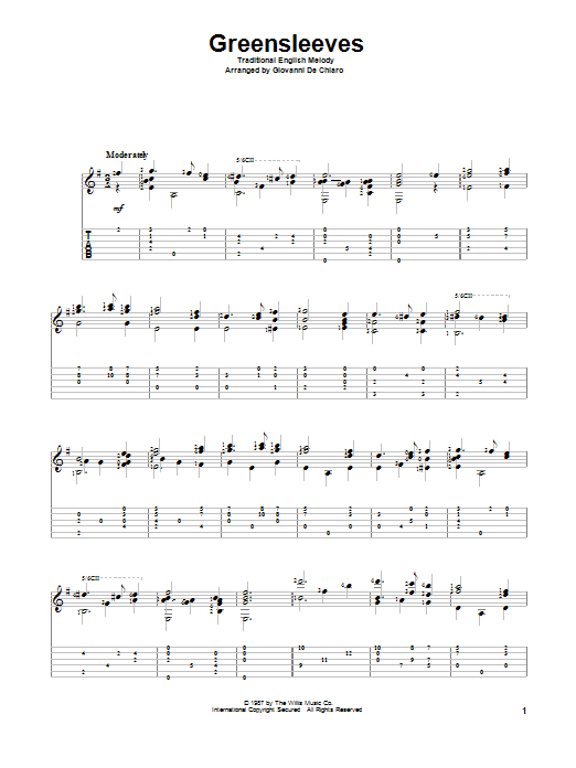 Download or print Giovanni De Chiaro Greensleeves sheet music, chords and digital score arranged for Solo Guitar. This Classical score includes 2 page(s).