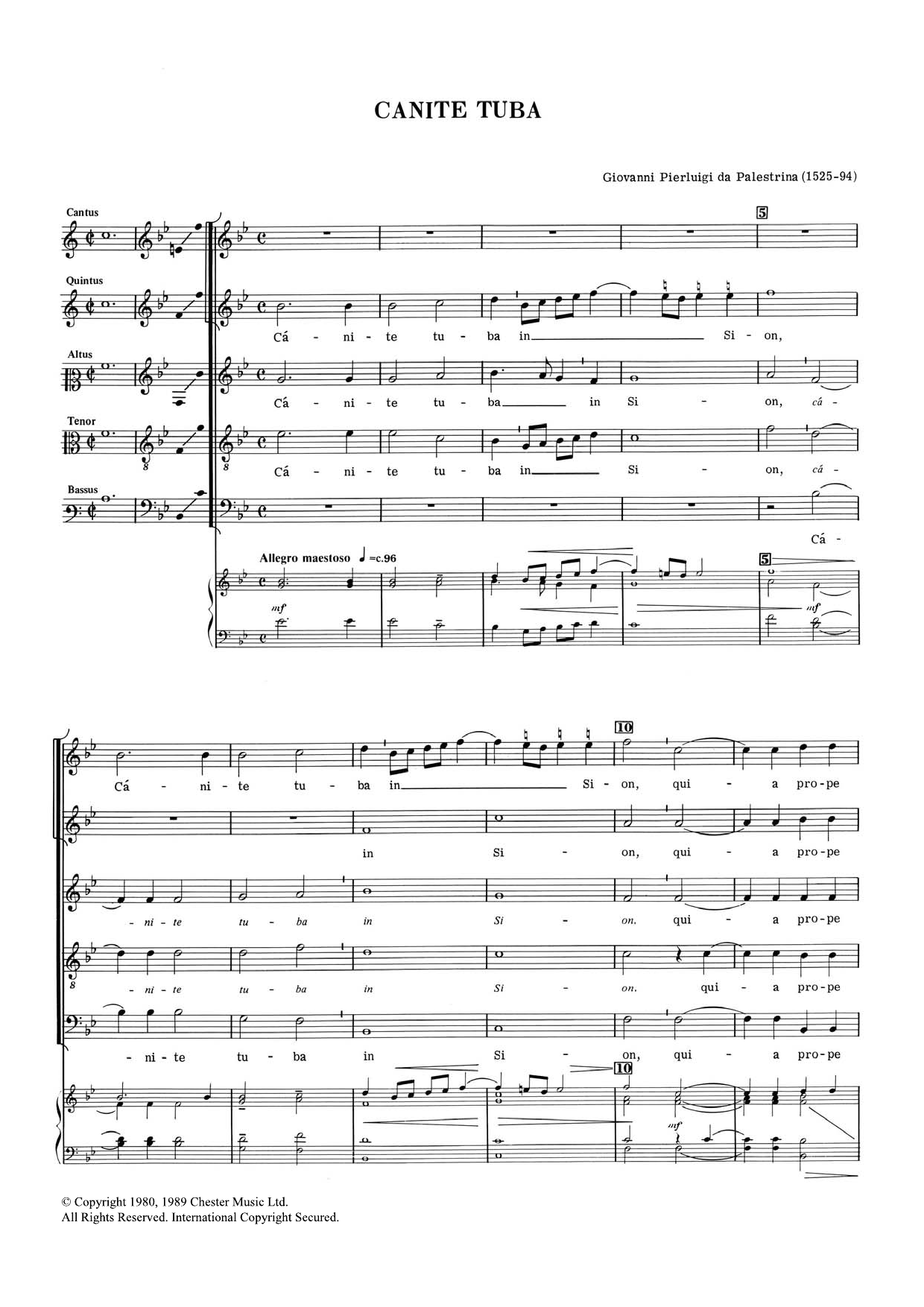Download or print Giovanni Palestrina Canite Tuba sheet music, chords and digital score arranged for SATB Choir. This Inspirational score includes 6 page(s).