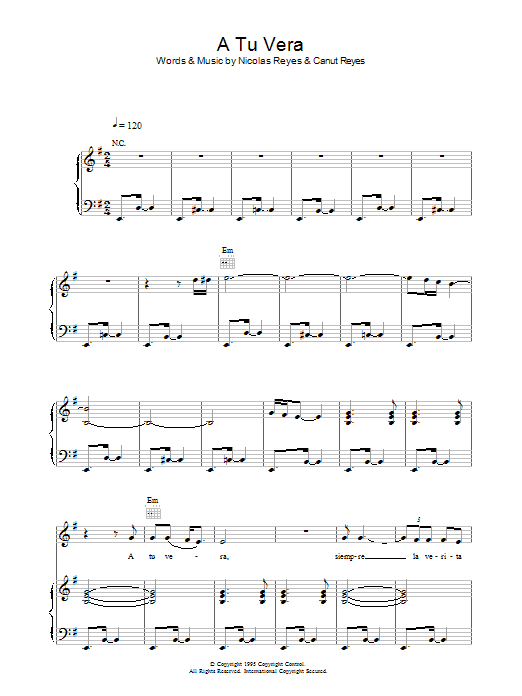 Download or print Gipsy Kings A Tu Vera sheet music, chords and digital score arranged for Piano, Vocal & Guitar Chords. This Latin score includes 8 page(s).