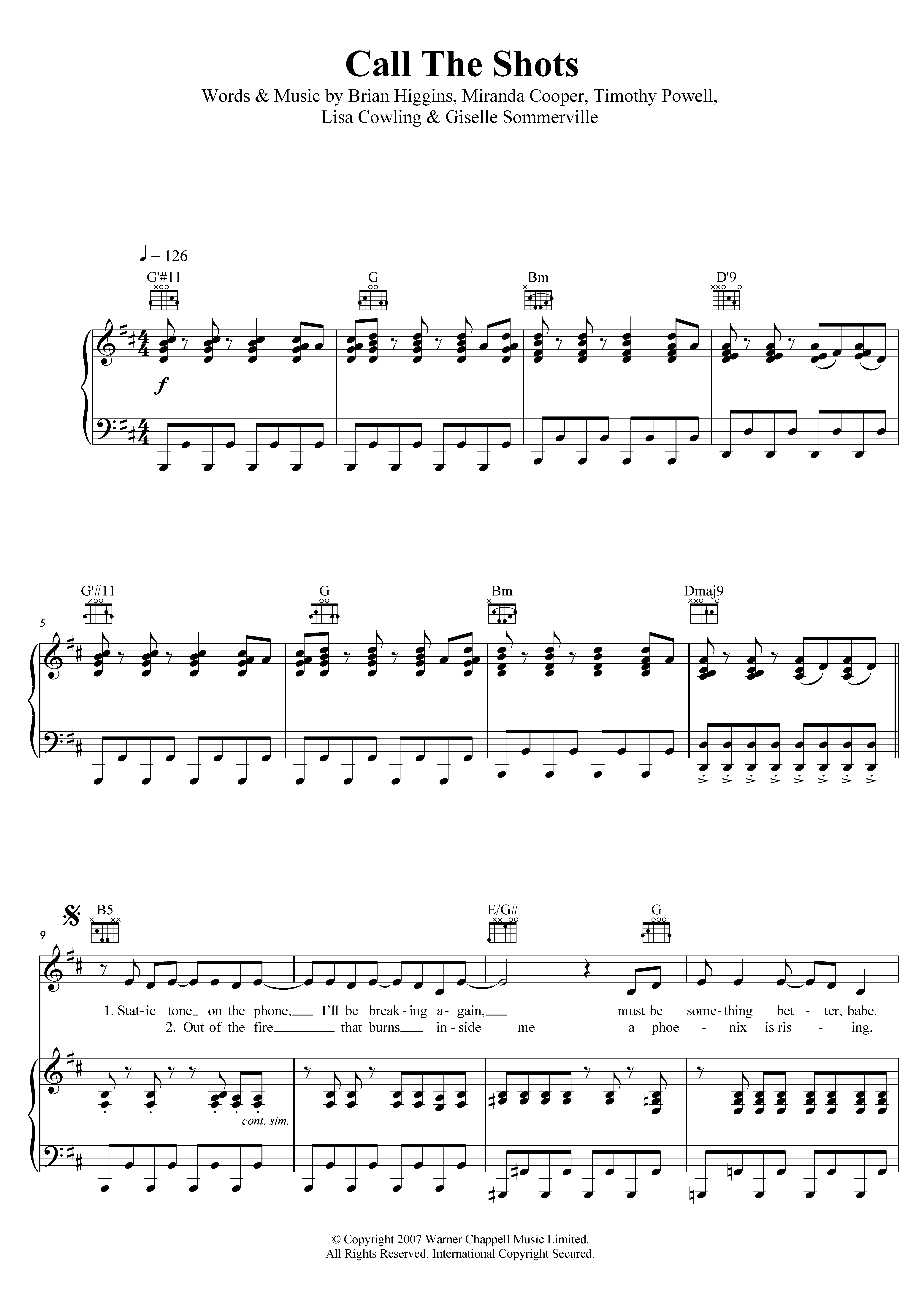 Download or print Girls Aloud Call The Shots sheet music, chords and digital score arranged for Piano, Vocal & Guitar Chords (Right-Hand Melody). This Pop score includes 4 page(s).
