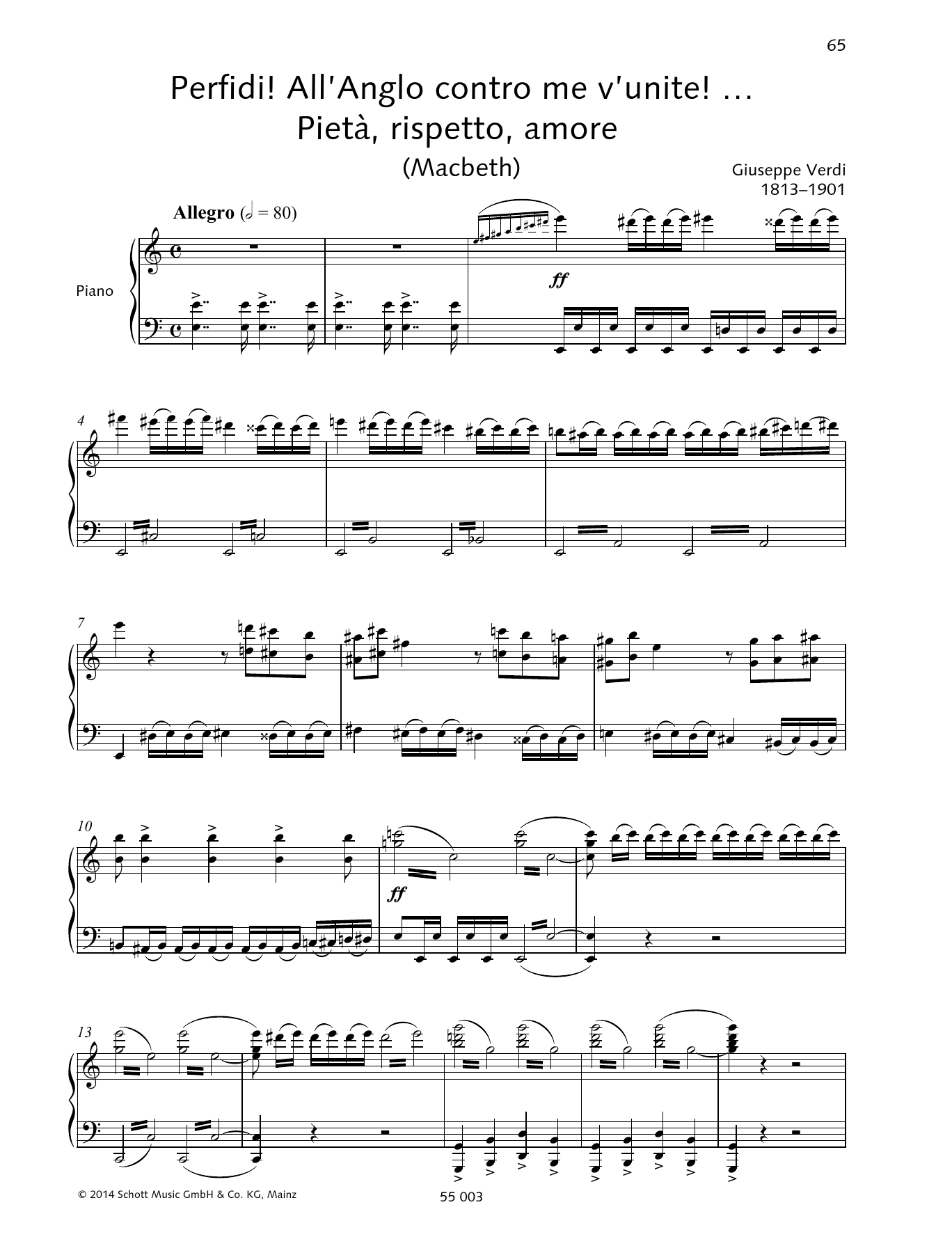 Download or print Giuseppe Verdi Perfidi! All'Anglo contro me v'unite!... Pietà, rispetto, amore sheet music, chords and digital score arranged for Piano & Vocal. This Classical score includes 6 page(s).