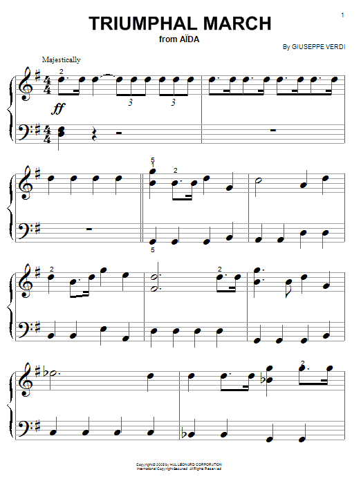 Download or print Giuseppe Verdi Triumphal March sheet music, chords and digital score arranged for Piano Solo. This Classical score includes 4 page(s).