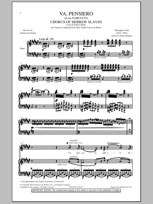 Download or print Giuseppe Verdi Va, Pensiero sheet music, chords and digital score arranged for 4-Part Choir. This Children score includes 8 page(s).