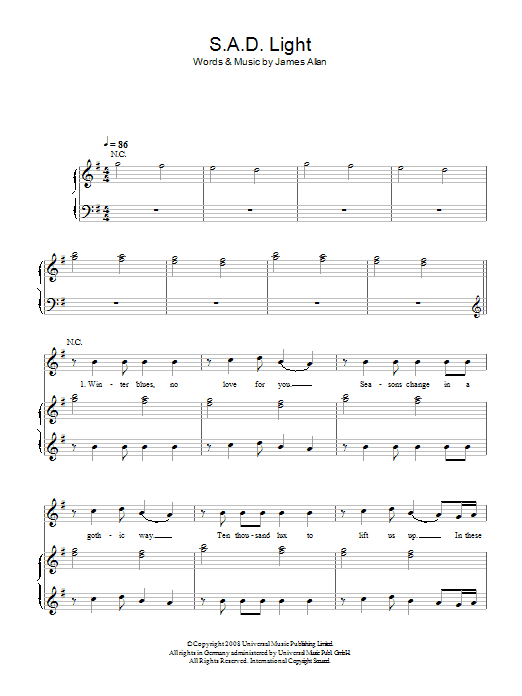 Download or print Glasvegas SAD Light sheet music, chords and digital score arranged for Piano, Vocal & Guitar Chords. This Rock score includes 6 page(s).