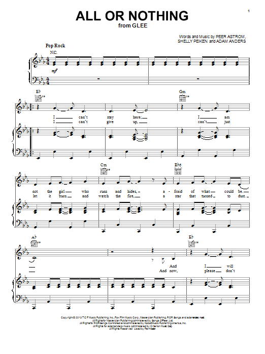 Download or print Peer Astrom All Or Nothing sheet music, chords and digital score arranged for Piano, Vocal & Guitar Chords (Right-Hand Melody). This Film/TV score includes 6 page(s).