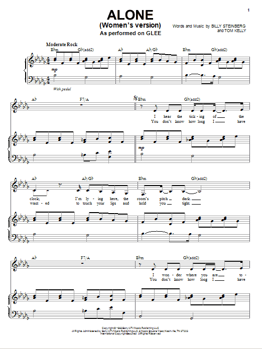 Download or print Glee Cast Alone sheet music, chords and digital score arranged for Easy Piano. This Rock score includes 3 page(s).