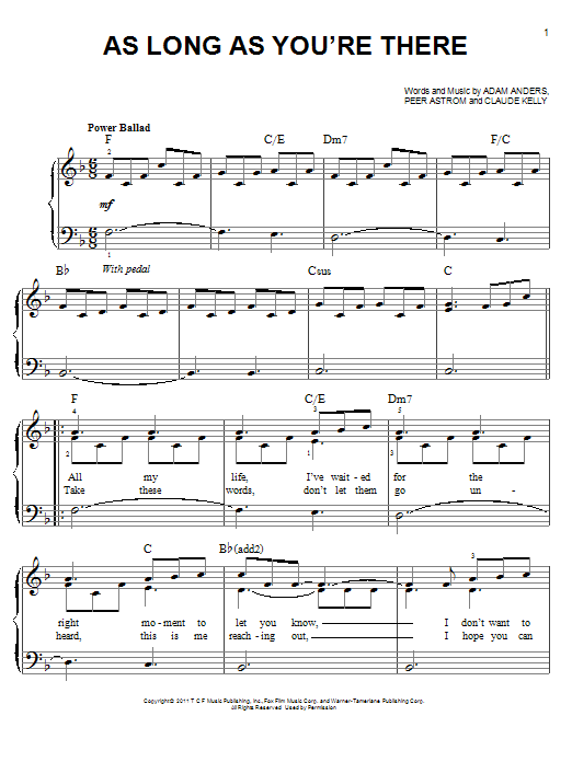 Download or print Glee Cast As Long As You're There sheet music, chords and digital score arranged for Piano, Vocal & Guitar Chords (Right-Hand Melody). This Film/TV score includes 5 page(s).