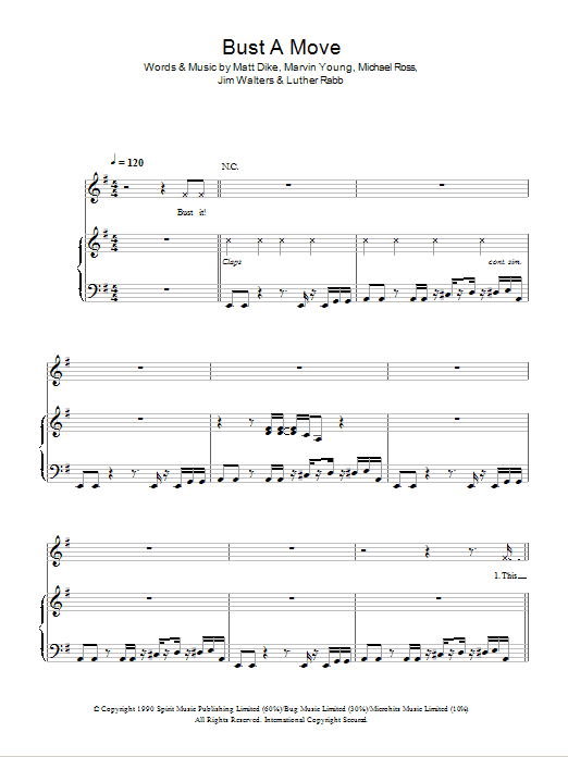 Download or print Glee Cast Bust A Move sheet music, chords and digital score arranged for Piano, Vocal & Guitar Chords. This Hip-Hop score includes 9 page(s).