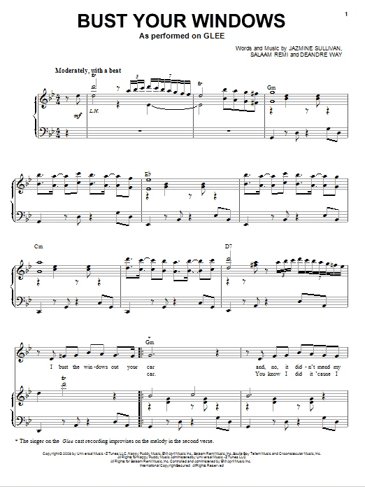 Download or print Glee Cast Bust Your Windows sheet music, chords and digital score arranged for Piano & Vocal. This Film/TV score includes 7 page(s).