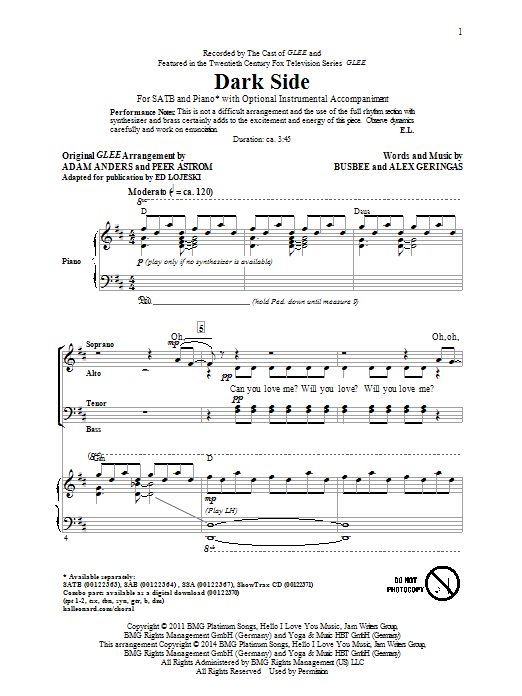 Download or print Ed Lojeski Dark Side sheet music, chords and digital score arranged for SSA Choir. This Inspirational score includes 11 page(s).
