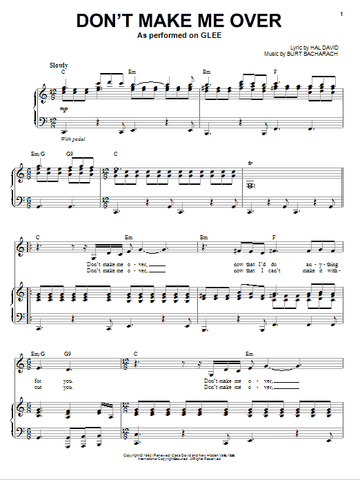 Download or print Glee Cast Don't Make Me Over sheet music, chords and digital score arranged for Piano & Vocal. This Pop score includes 4 page(s).