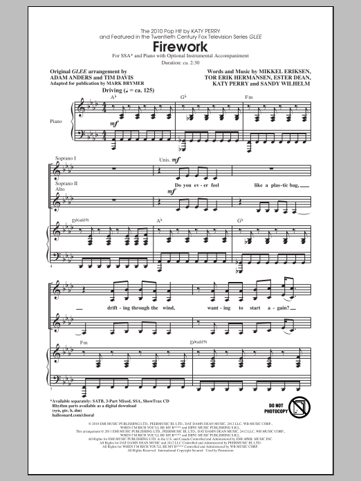 Download or print Mark Brymer Firework sheet music, chords and digital score arranged for 3-Part Mixed Choir. This Pop score includes 9 page(s).