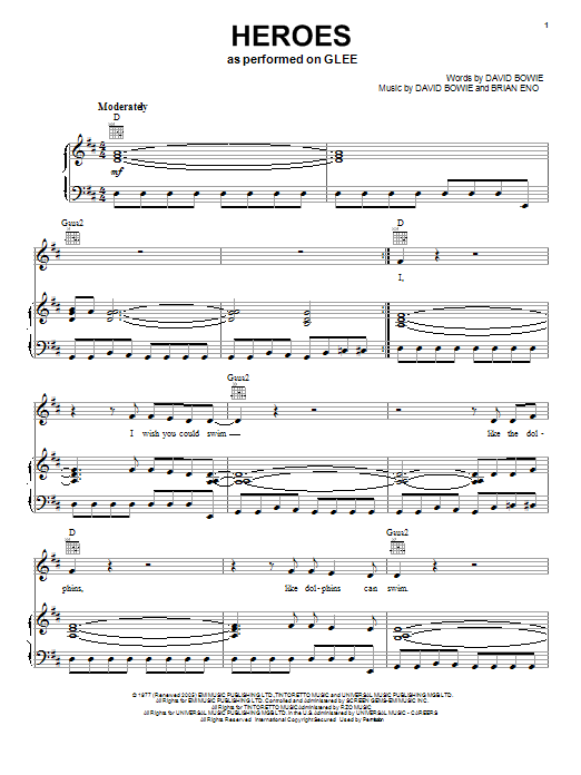 Download or print Glee Cast Heroes sheet music, chords and digital score arranged for Piano, Vocal & Guitar Chords (Right-Hand Melody). This Pop score includes 7 page(s).