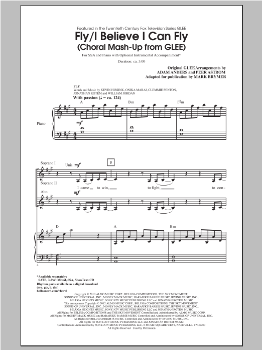 Download or print Glee Cast Fly / I Believe I Can Fly (Choral Mash-up from Glee) (ed. Mark Brymer) sheet music, chords and digital score arranged for 3-Part Mixed Choir. This Pop score includes 13 page(s).