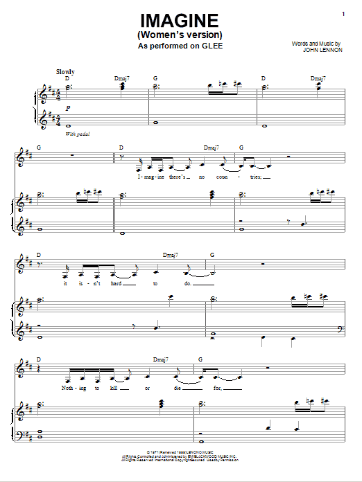 Download or print Glee Cast Imagine sheet music, chords and digital score arranged for Easy Piano. This Folk score includes 3 page(s).