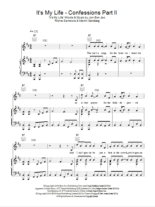Quick facts It's My Life / Confessions, Pt. II about digital sheet music
