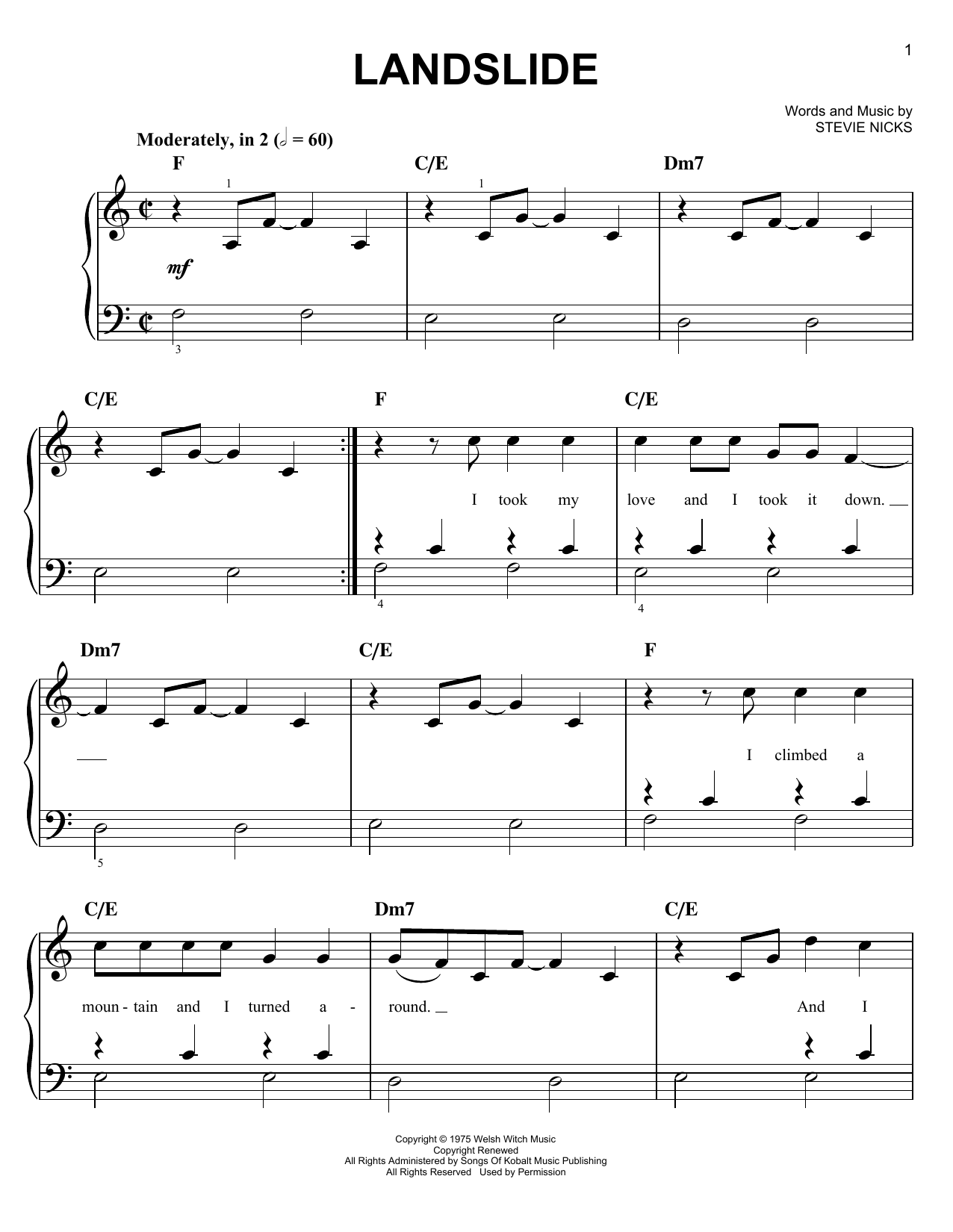 Download or print Glee Cast Landslide sheet music, chords and digital score arranged for Piano, Vocal & Guitar Chords (Right-Hand Melody). This Pop score includes 7 page(s).