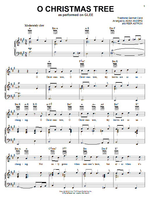 Download or print Glee Cast O Christmas Tree sheet music, chords and digital score arranged for Easy Piano. This Pop score includes 4 page(s).