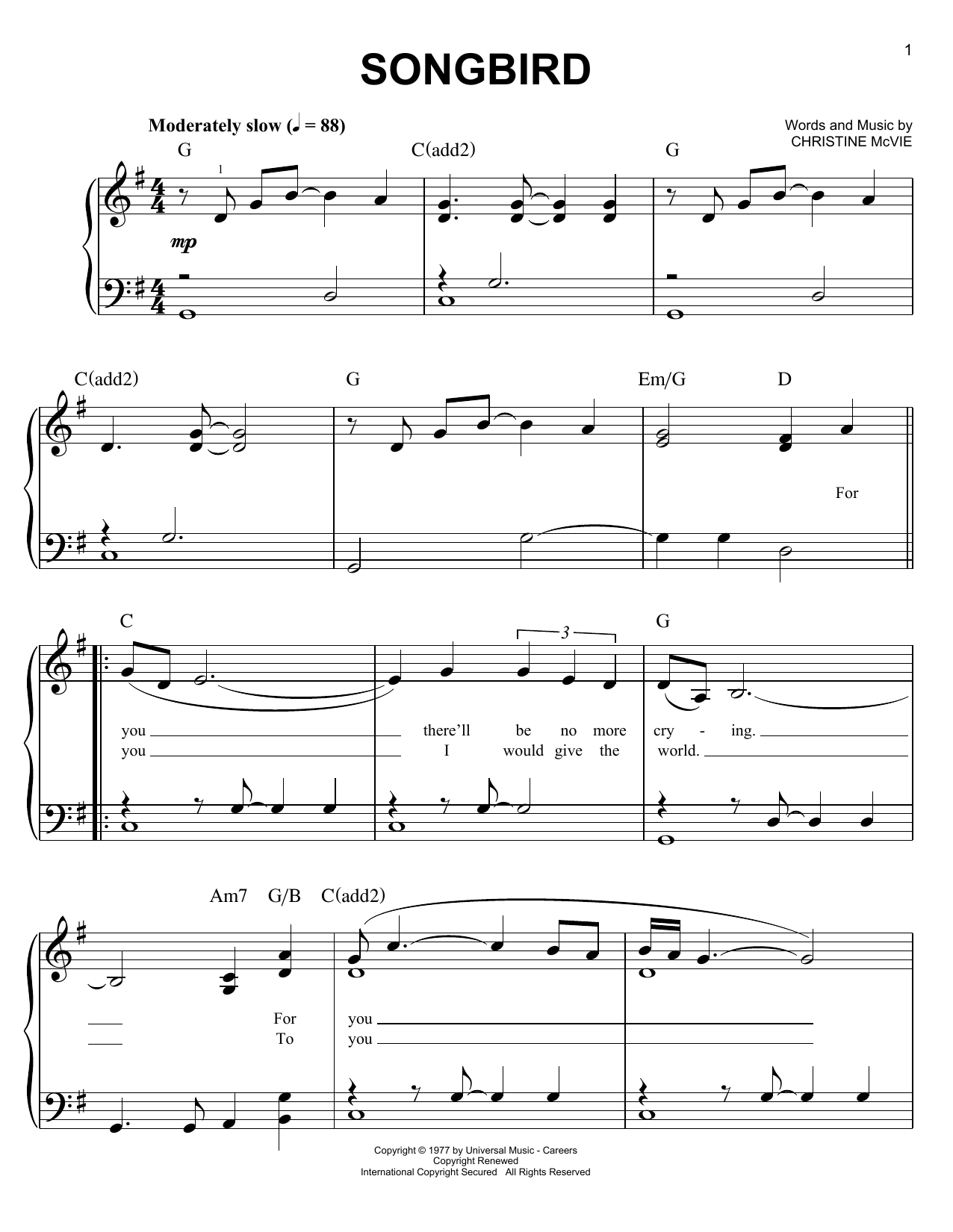Download or print Glee Cast Songbird sheet music, chords and digital score arranged for Piano, Vocal & Guitar Chords (Right-Hand Melody). This Film/TV score includes 5 page(s).