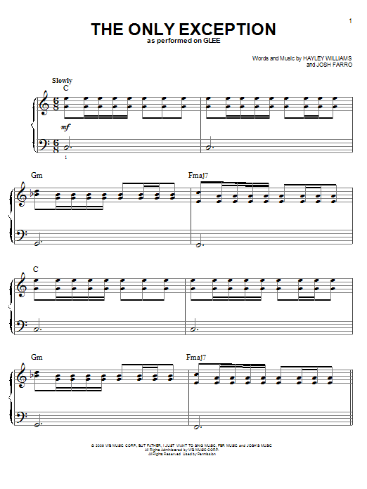 Download or print Glee Cast The Only Exception sheet music, chords and digital score arranged for Piano, Vocal & Guitar Chords. This Pop score includes 5 page(s).