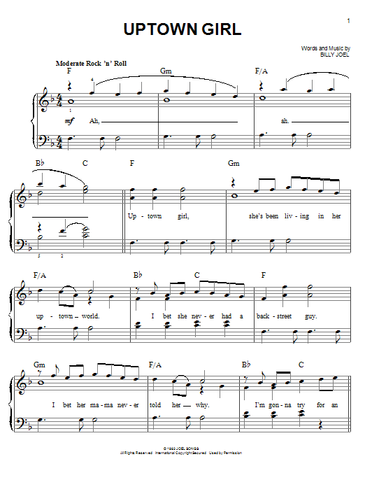 Quick facts Uptown Girl about digital sheet music