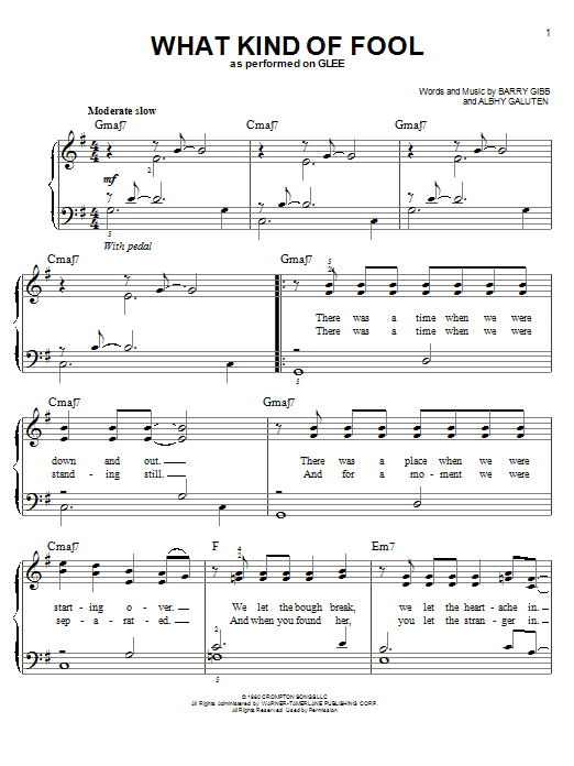 Download or print Glee Cast What Kind Of Fool sheet music, chords and digital score arranged for Easy Piano. This Pop score includes 5 page(s).