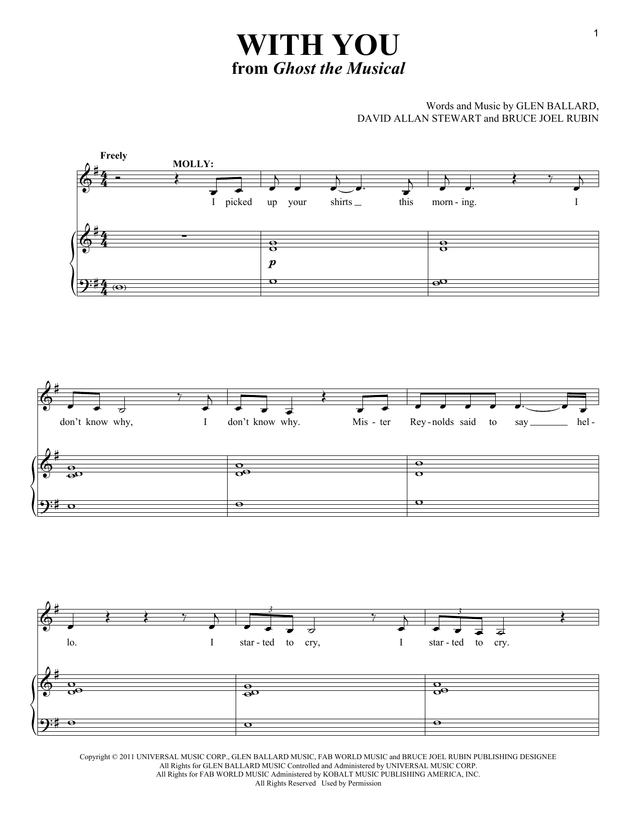 Download or print David Allan Stewart With You sheet music, chords and digital score arranged for Piano & Vocal. This Musical/Show score includes 8 page(s).