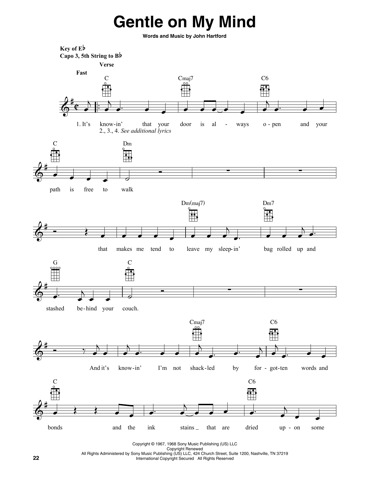 Quick facts Gentle On My Mind (arr. Fred Sokolow) about digital sheet music