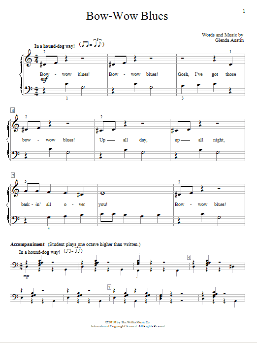Download or print Glenda Austin Bow-Wow Blues sheet music, chords and digital score arranged for Educational Piano. This Novelty score includes 4 page(s).