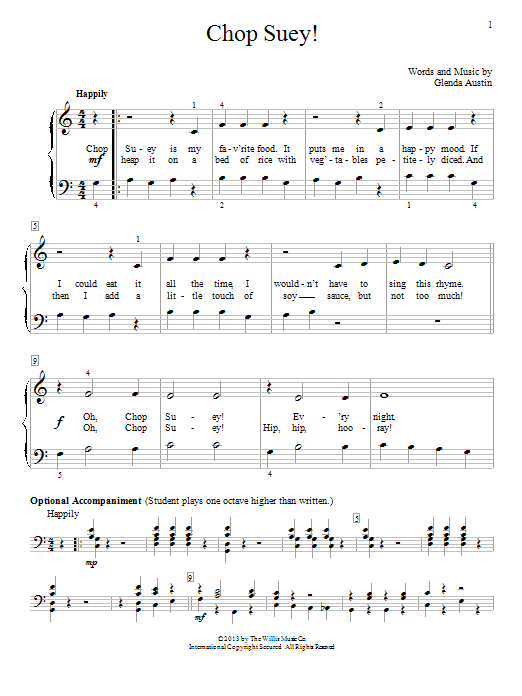 Download or print Glenda Austin Chop Suey! sheet music, chords and digital score arranged for Educational Piano. This Pop score includes 2 page(s).