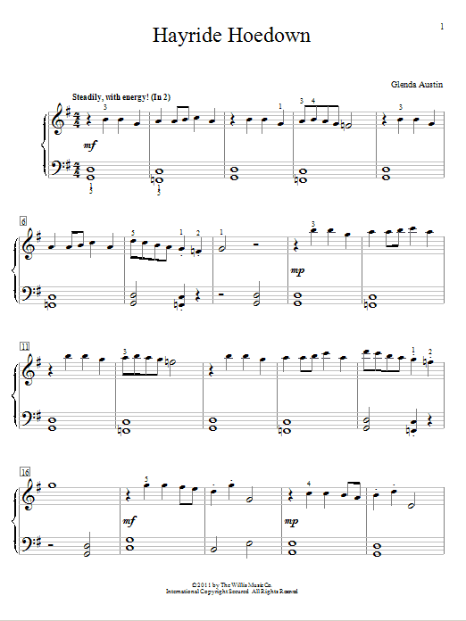 Download or print Glenda Austin Hayride Hoedown sheet music, chords and digital score arranged for Educational Piano. This Country score includes 2 page(s).