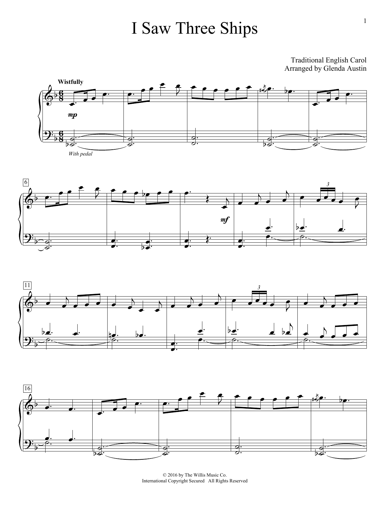 Download or print Glenda Austin I Saw Three Ships sheet music, chords and digital score arranged for Educational Piano. This Christmas score includes 2 page(s).