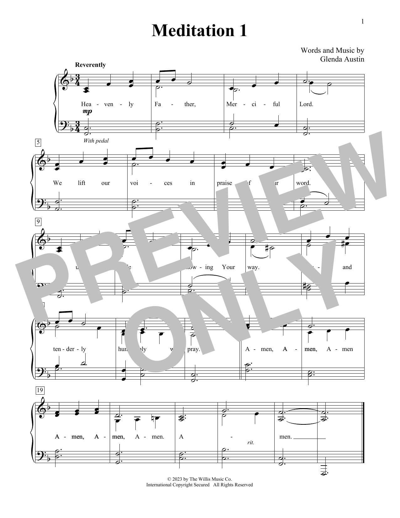 Download or print Glenda Austin Meditation 1 sheet music, chords and digital score arranged for Educational Piano. This Sacred score includes 1 page(s).