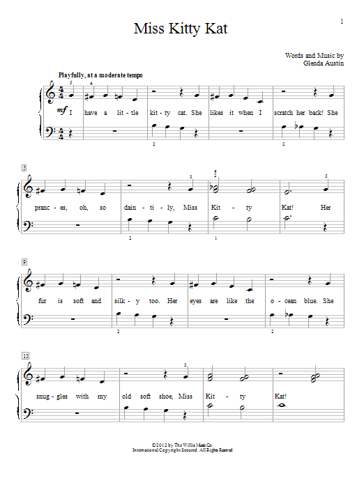 Download or print Glenda Austin Miss Kitty Kat sheet music, chords and digital score arranged for Educational Piano. This Pop score includes 2 page(s).