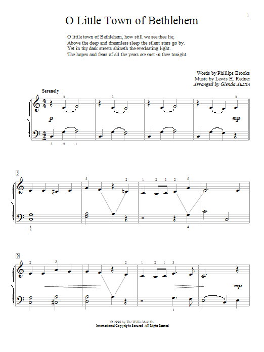 Download or print Glenda Austin O Little Town Of Bethlehem sheet music, chords and digital score arranged for Educational Piano. This Christmas score includes 2 page(s).