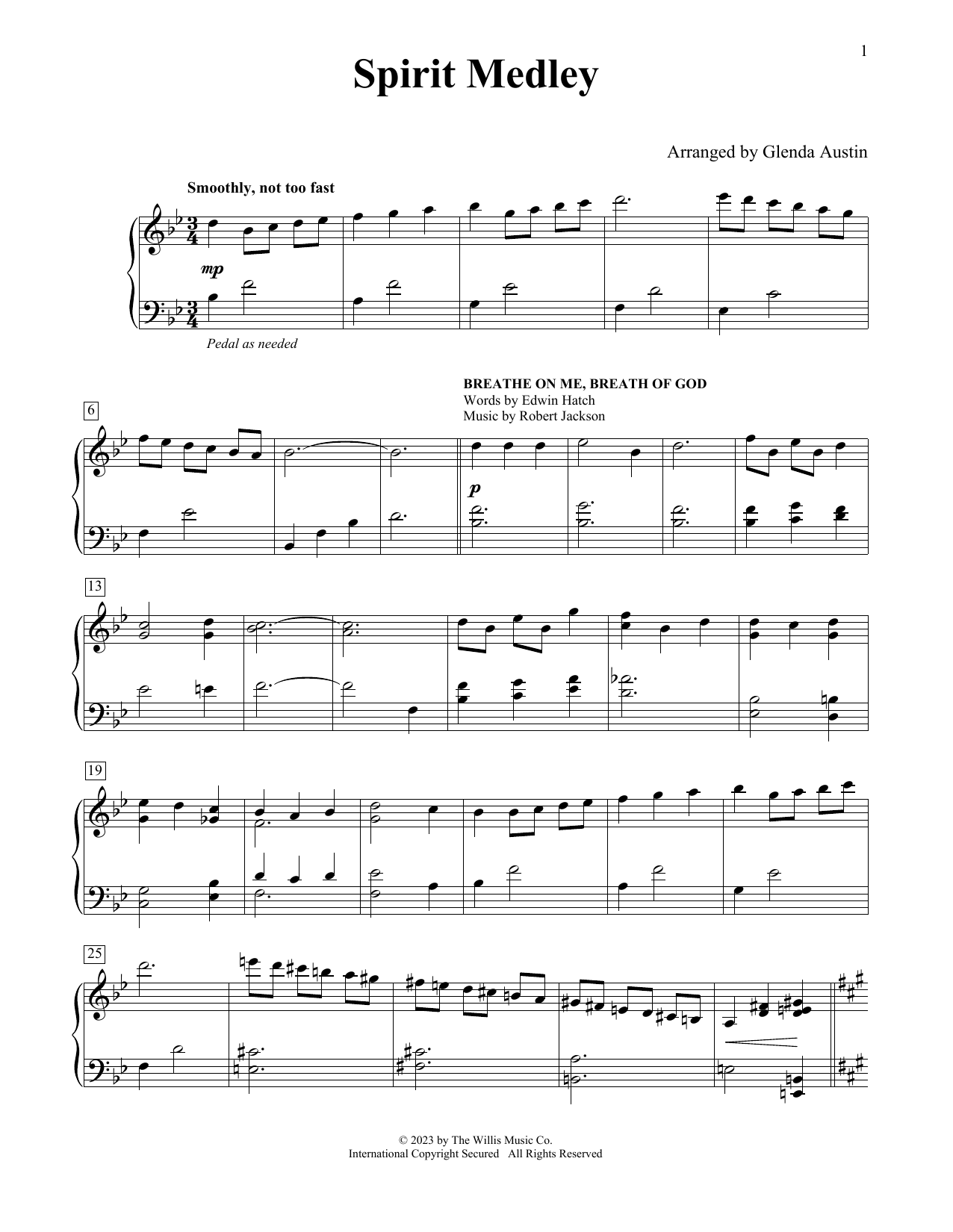 Download or print Glenda Austin Spirit Medley sheet music, chords and digital score arranged for Educational Piano. This Sacred score includes 2 page(s).