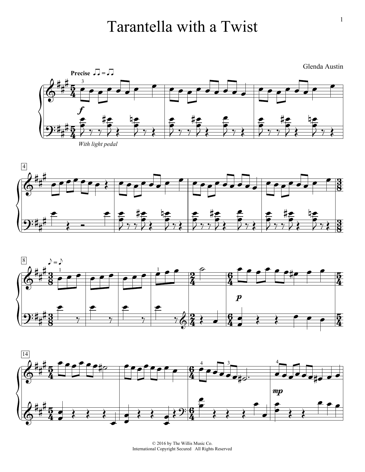 Download or print Glenda Austin Tarantella With A Twist sheet music, chords and digital score arranged for Piano Solo. This Instructional score includes 2 page(s).