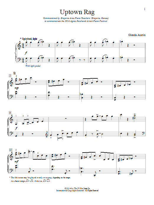 Download or print Glenda Austin Uptown Rag sheet music, chords and digital score arranged for Educational Piano. This Pop score includes 3 page(s).