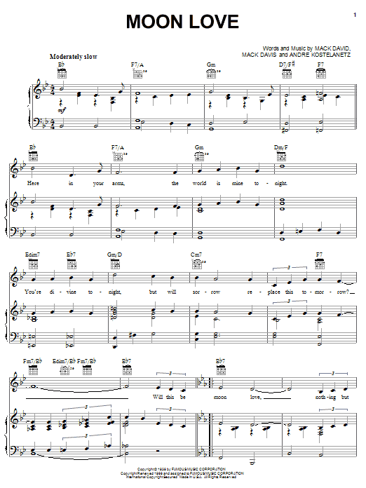 Download or print Glenn Miller Moon Love sheet music, chords and digital score arranged for Piano, Vocal & Guitar Chords (Right-Hand Melody). This Jazz score includes 3 page(s).