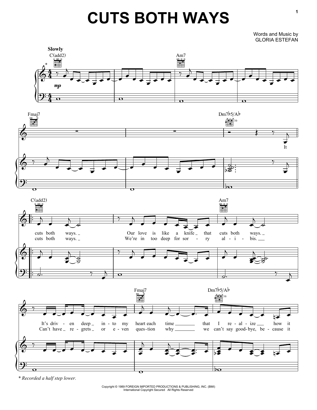 Download or print Gloria Estefan Cuts Both Ways sheet music, chords and digital score arranged for Piano, Vocal & Guitar Chords (Right-Hand Melody). This Latin score includes 4 page(s).
