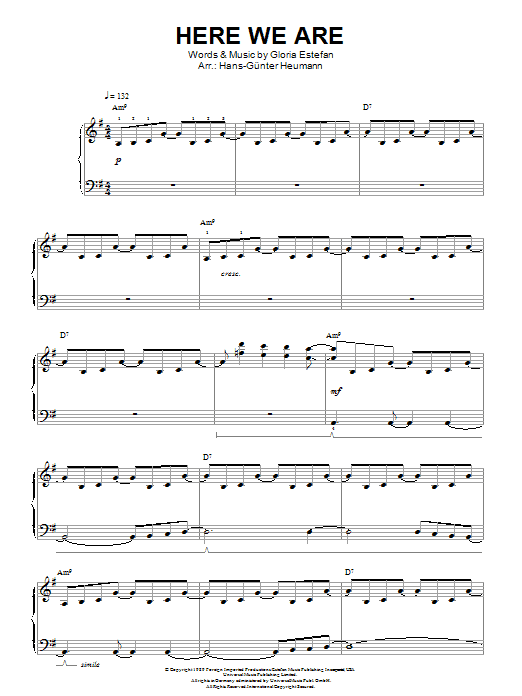 Download or print Gloria Estefan Here We Are sheet music, chords and digital score arranged for Piano & Vocal. This Pop score includes 8 page(s).
