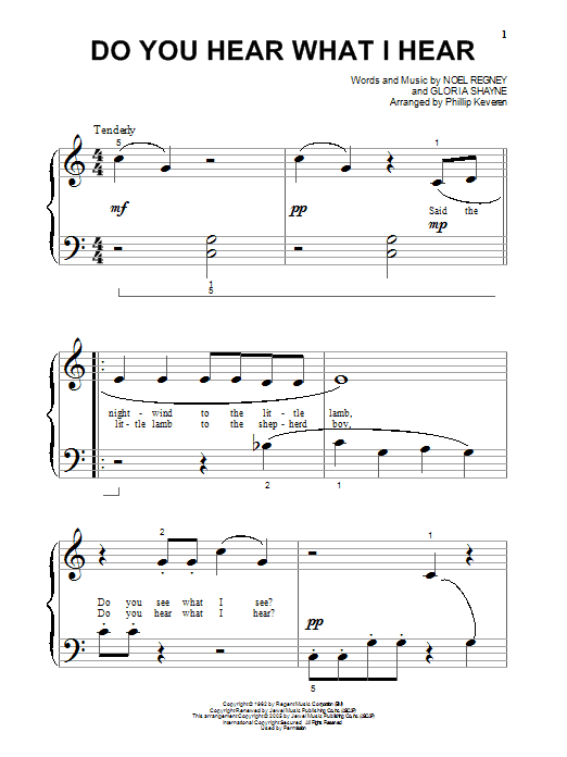 Download or print Gloria Shayne Do You Hear What I Hear (arr. Phillip Keveren) sheet music, chords and digital score arranged for Big Note Piano. This Children score includes 5 page(s).