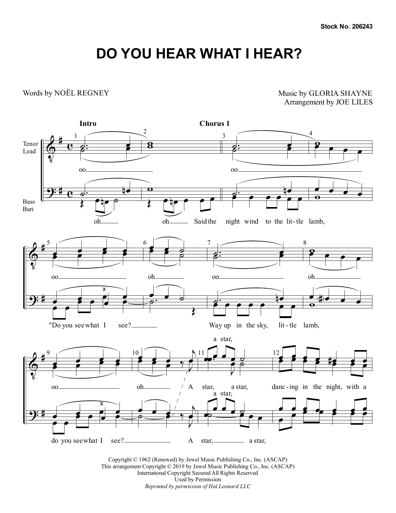 Download or print Gloria Shayne Do You Hear What I Hear? (arr. Joe Liles) sheet music, chords and digital score arranged for TTBB Choir. This Barbershop score includes 6 page(s).